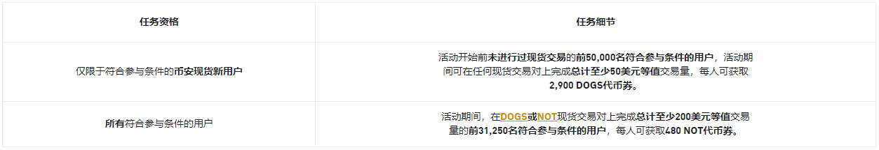 币安推出首个Telegram小程序游戏Moonbix的活动!活动期间,用户可完成任务,瓜分145,000,000 DOGS和15,000,000 NOT代币券奖励。